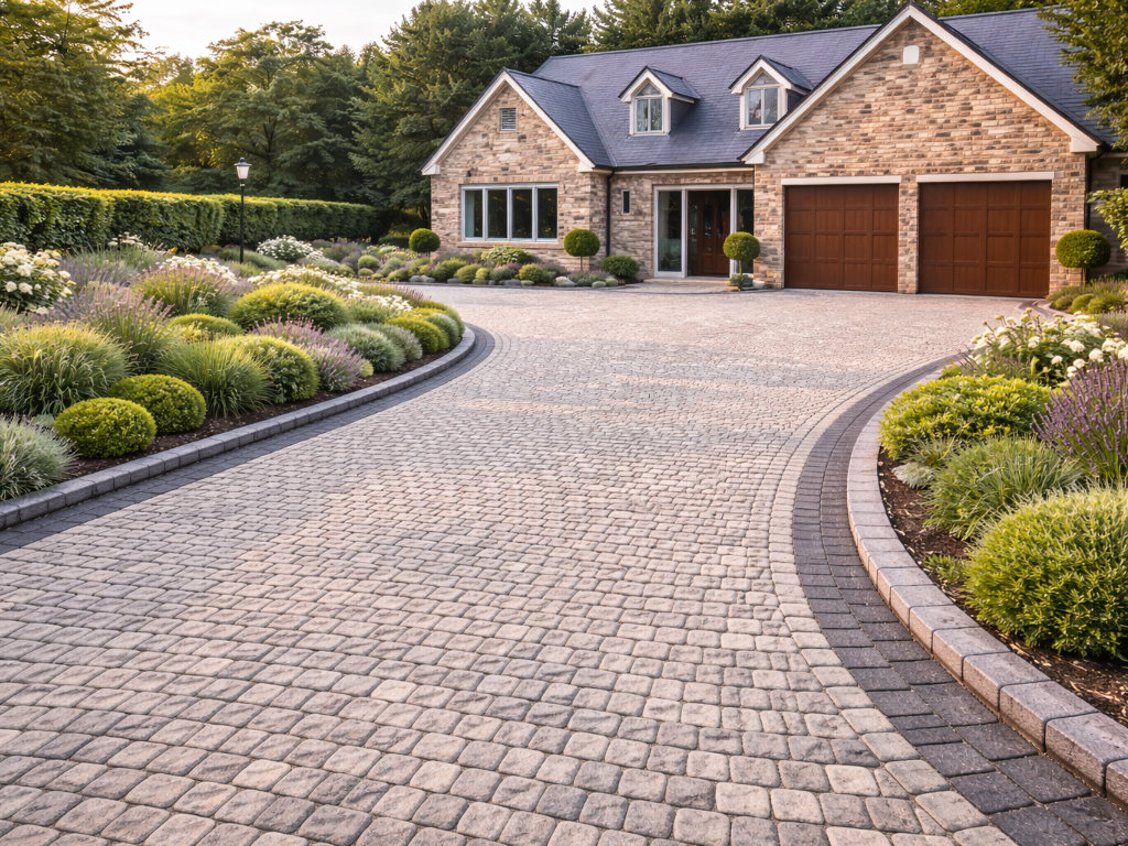 - Block paving, cobblestone looks, resin-bound and durable driveway surfaces