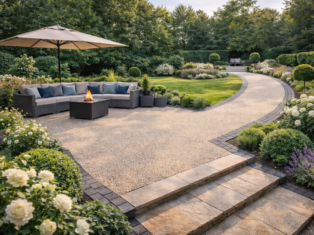 - Loose stone and aggregate finishes (gravel, pebbles, flint, stone chippings) for private estate-style drives and paths