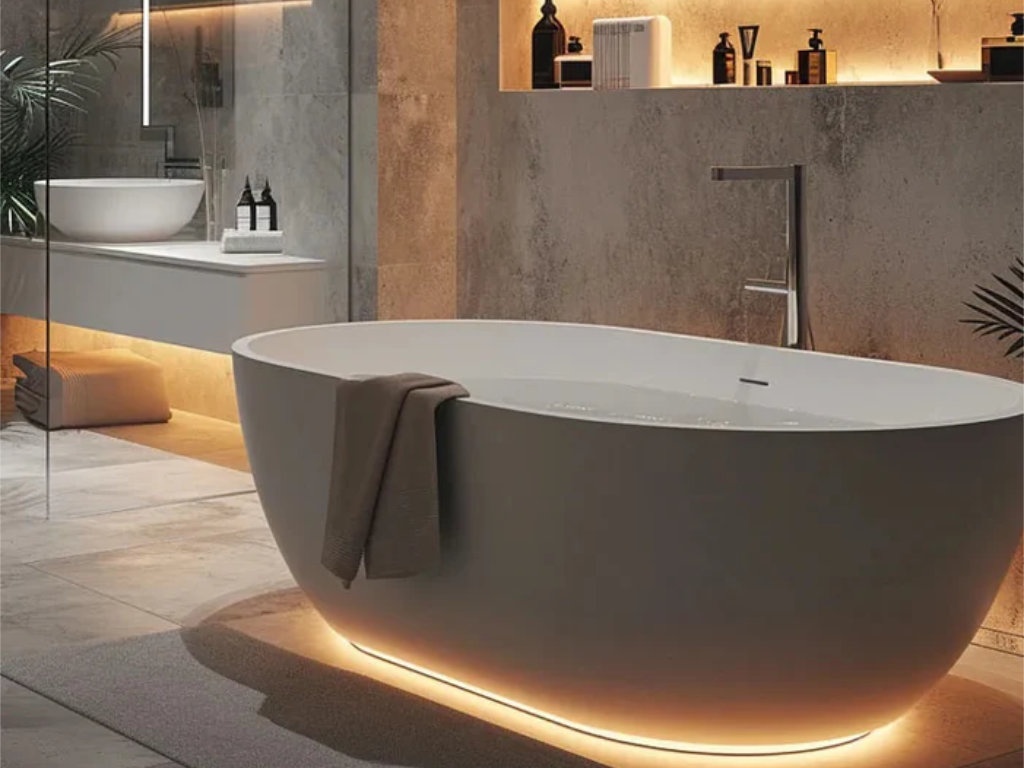 - Large-format tiles, microcement-style looks, or clean panel systems where suitable